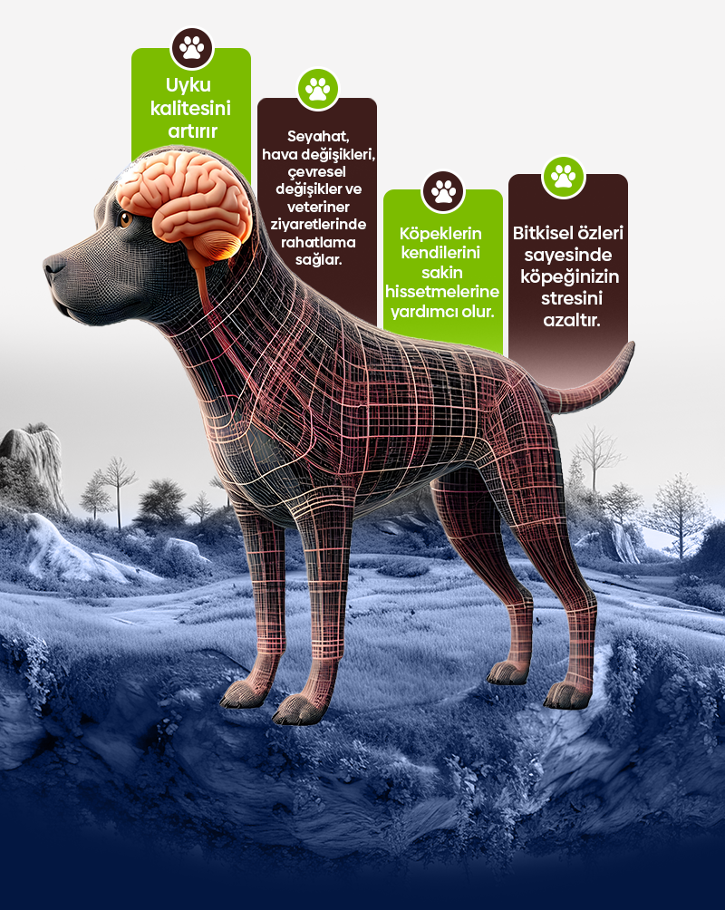 Seyahat, hava değişikleri, çevresel değişikler ve veteriner ziyaretlerinde rahatlama sağlar.