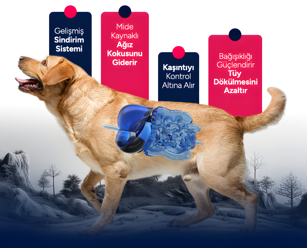 Sindirim Sağlığını Destekleme Probiyotik bakteriler ve sindirim enzimleri, köpeğinizin sindirim sistemindeki dengesizliği düzeltir. Beta-glukanase ve alpha amylase gibi enzimler, lifleri ve nişastayı parçalayarak sindirimi iyileştirir, besinlerin emilimini artırır.